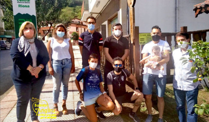 De izda a dcha: De pie, Ana Díaz, alcaldesa de Riosa; Beatriz Álvarez, directora de Deportes del Principado; Gonzalo Alvarez (primero que subió corriendo el Angliru); Juan Carlos Álvarez, concejal de Turismo; Luis Pérez (atleta de Ochobre Atletismo con su hija) y Alejandro de Ancos, organizador de la Carrera. Agachados: Ana María y Cándido Diez (atletas media maratón).