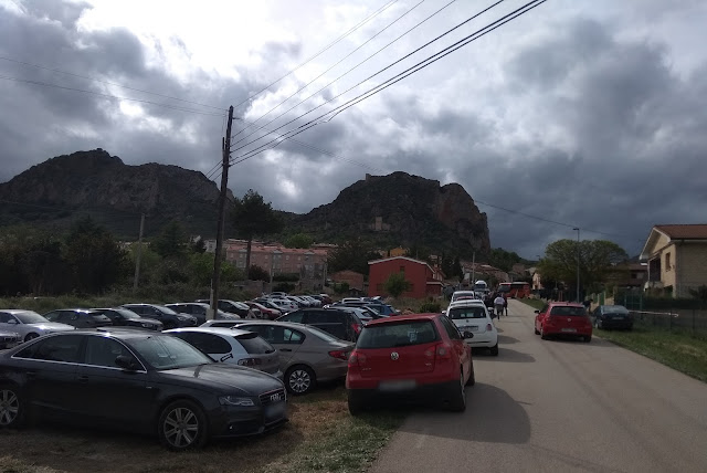 Y aunque el medio mas utilizado, para llegar a Poza de la Sal, después de aparcar, era, andando por la carretera..........................existía un camino peatonal.Se divisaban más aparcamientos.